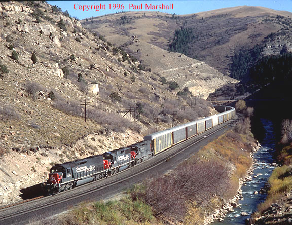 SP SD45T-2 #8495 westbound Price River Canyon October 1996