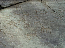 At Capo di Ponte to the north of Lake Iseo in northern Italy is the Naquane National Park. This contains some of the most important rock drawings in Europe. The site covers 74 acres and has about 30000 drawings dating from 4000 BC to around 1000 BC.