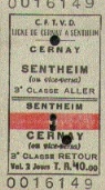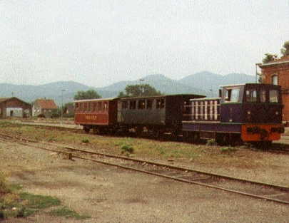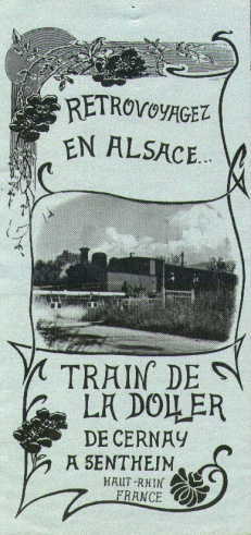 Opened in 1901 the branch line from Cernay to Sewen was closed to traffic in 1972. In 1975 a preservation group began running a tourist service. The route first travels through flat farming land and the crew have to manually operate the barriers at points where the line crosses roads. As the train approaches a crossing staff members jump off and run ahead, close the gates to road traffic and then after the train has passed they open the gates, run and catch up with the train and leap aboard ready to repeat their actions at the next crossing. The line crosses the River Doller via a very narrow bridge, over which the train barely fits, and arrives at Burnhaupt where a large selection of rolling stock and locos are stabled. The line then follows the river valley through pleasant scenery until it reaches the station at Senheim where food and souvenirs are available.