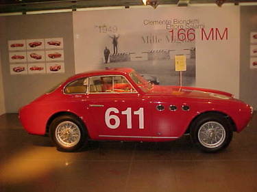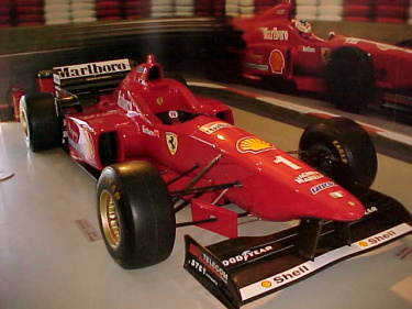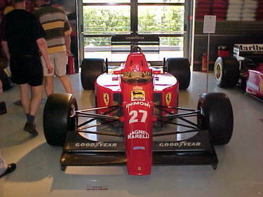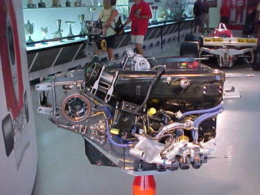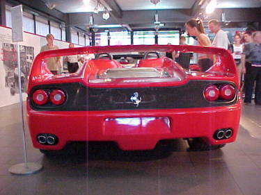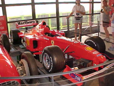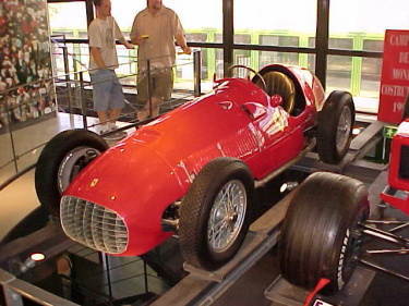 The Galleria Ferrari contains a large and comprehensive collection of Ferrari cars, components and memorabilia. Cars range from the 125, the first Ferrari built, through a large selection of road and track models up to the fabulous and rare F50 roadcar and last seasons F1 cars. As well as complete cars there are engines, gearboxes and other parts including a prototype desmodromic cylinder head. A reconstruction of Enzo Ferrari's office is amongst the other items on display, as well as a selection of the trophies the company has won over the years. The gift-shop sells everything that the Ferrari fan could wish for including used parts (such as valves and pistons) from the race cars. Still that's enought from me, I'll let the pictures do the talking. |