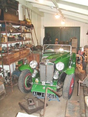 Inside the Jackson Shed, we have, the Halford Aston Martin. On the right, still sitting on the old weighbridge inside the Clubhouse is the 1928 Dusenberg, formerly owned by motor journalist Denis Jenkinson.