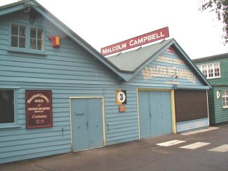 On the left, the fully restored ERA sheds, which date from the 1930's. On the right are the Malcolm Campbell sheds, built between 1926 and 1931. Unfortunately, due to flood damage late last year, these buildings are still not open to the public, but they normally house a collection of cars and bikes.