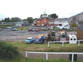 On the left, the Shell Petrol Pagoda, looking just as it did in the 1930's. On the right, the Clerk Of The Course office.