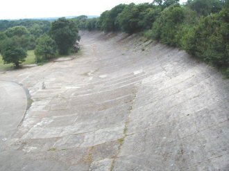 Left, the view from the bottom of the Test Hill, overlooking the Clubhouse and paddock. Right, the banking looking down from the Members' Bridge.