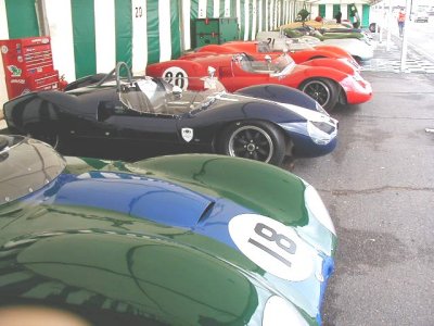 The Historic Sports Car Club was asked by organisers Octagon to organise an historic sports car race to support the British Grand Prix. After receiving some 80 entries, the field was whittled down to 45 starters. Famous names among the starters included Frank Sytner, Robert Brooks, Barrie Williams, Tony Dron, Win Percy, David Piper and Sir Stirling Moss. It really was a mouth-watering array of late 50's and early 60's sports cars!I tried vainly to get some racing shots, but you know how it is at Silversone these days, you're at least half a mile from the track with untold fences etc in between, which is why I'm not including many. Better off with the paddock shots!