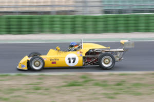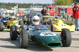 My friend Thilo Figaj reports from the newly renovated Hockenheim circuit. The season opener of the Historic Racecar Association (HRA) at Hockenheim on April 26/27 saw 21 formula cars, as usual of different eras and classes. The series GERMAN OPEN is for 1000, 1600 and 2000cc F3 cars, historic Formula Fords and similar small capacity formulae. The organizers for this weekend were Porsche GTP series. Hockenheim nears completion of the GP circuit. The short circuit is ready. It was redesigned and the first corner is very fast now. Run-offs are now tarmac. The 2.604 km track has been re-surfaced and the track offers more grip than before. It is also 34 meters shorter now (before 2.638 kms), so lap times got as low as 1.06 min in the F3 2 litre class. The pole was taken by Peter Hug in RALT RT 1, the smaller capacity F3 and FFs went round in 1.10 - 1.14. For comparison, modern F3s and DTM lap in 55 secs now. The HRA is a privately organized series, the drivers compete in the races in their own classes. Fastest cars and nearly always good for overall victory are the 2 litre F3s. The field consists of RALT RT1s and Chevrons. Peter Hug drives a prominent car, an ex-Nelson Piquet RT1 chassis. Hug finished second to Gerd Holtkamp (also in an RT1) in the 2001 club championship, but this weekend he took overall victory in both heats at Hockenheim from Klaus Henrich (in the red RT1 # 9). The HRA offers its members 2 practice sessions and two races (20 laps each) at a weekend at fees for which other series only offer one race. Herman Unold (Tecno), Richard Spelberg (Lotus 59) and Lothar Peters (Merlyn MK9) were the starters in the 1 litre F3 class, with Unold the eventual winner in both heats from Spelberg and Peters. The Merlyn lost all its coolant in the first heat (see photo). F3 1600cc was won by Hans Wolf (Ensign) from Willi Peters in his superbly prepared yellow March a close second. Formula Ford was once again dominated by Dietrich Wöllhardt (the current Champion in the HRA) in his 1971 Barney, lapping as fast as 1.11 in the second heat and giving the smaller F3s a hard time. Second was Werner Pönitz in Lotus 61, third Thilo Figaj in Lotus 51 (the very first FF chassis, an ex Motor Racing Stables car). Figaj spun off and went into the tyrewall in the first heat after attacking Pönitz at the Sachscurve. Luckily, the car received only very minor damage and he regained the track after losing some 30 secs. HRA competitors were lucky this weekend as all their practice and race sessions dry, although overall it was two very windy, rainy and cold days. The next meeting is at Spa Francorchamps on the 18th and 19th May, together with the Dutch HELENA Series, which will see some fifty historic cars racing in the Ardennes. If anyone out there is interested in joining us, please feel free to call me on +49 6251 177318 (office) or e-mail me on TFigaj@LadyEsther.com