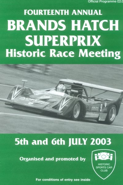 HISTORIC SPORTS CAR CLUB 'SUPERPRIX' BRANDS HATCH 5th and 6TH JULY 2003.