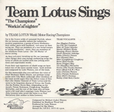 This is the sleeve and actual record of the only (so far!) release by Team Lotus.