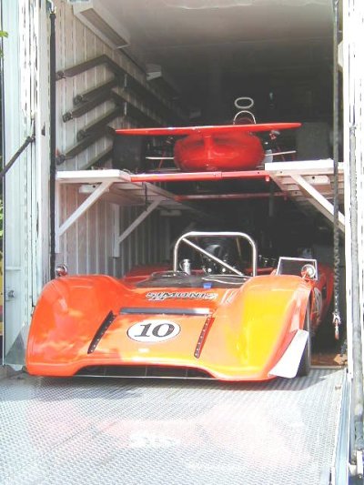 We all know that this is a Lola T-163 ready to come off the transporter, but what's that above it??