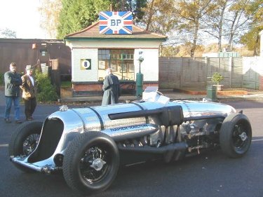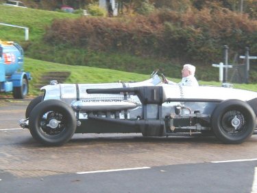 I nipped down to the Brooklands Museum on the 24th November, as the Museum was giving the Napier Railton its' last run before the winter really sets in. This is the car that holds the Brooklands Outer Circuit lap record in perpetuity. The Museum has looked after the car for quite a few years now, but only recently has it actually owned it, after a grant from the National Lottery Fund last year they now own a car that was a star of Brooklands before the Second World War. The car is normally run twice a year, in March and November, and can sometimes also be seen at events such as the Goodwood Festival of Speed. The car has a custom built chassis, and for its' power unit features a 12 cylinder Lion aero engine, that displaces 24 litres, which when wound up, has 500 BHP on tap. Make no mistake, this is a BIG car!