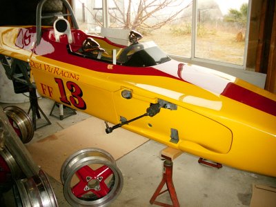 Since I started this site I have been contacted by many people who tell me how much they enjoy it. Amongst those people are some lucky owners of race cars. Some of them have forwarded photos of their own cars. I thought I would start a gallery of some of them. Here's Murray Chalmer's Lola T200. Murray bought this car as, literally, a basket case in August 2001. The car arrived in a crate two metres by three by seven! Having paid $4,000 for it, he found that the chassis was absolutely perfect, likewise the bodywork, but the car didn't have an engine or gearbox. He had bought the car from someone who was racing another T200, and when he had a mishap with the racecar, he cannibalised chassis 21 for spare parts. When the car arrived, ALL the suspension parts were bent, the rear uprights were broken and a new fuel tank was needed. New dashboard instruments were needed too.