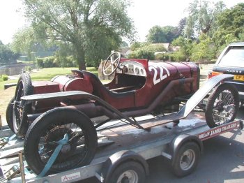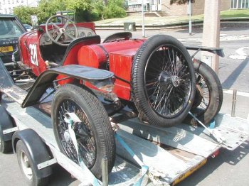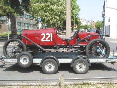 I spotted this car on a trailer in Lower Sunbury, Middlesex just this afternoon. I've absolutely no idea what the car is, there's no identification on the radiator or anywhere. It's obviously been either raced or hill-climbed at some point as there is a number on its' sides. It's left hand drive too, so obviously foreign to these shores.