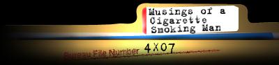 (The Cigarette-Smoking Man takes another drag off his cigarette and looks down, his face in shadows.)
