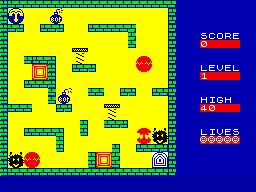Deadly Snappers. The game's twist is that instead of having control of our egg-shaped hero, you get to direct the movement of the maze itself. The reason for this is that not only does Humpty look like a rugby ball, but he also behaves like one. He sits lifeless until the maze is turned through 90 degrees, whereupon he tumbles downward by the force of gravity. Only when an object is encountered or the Fuzzy Wuzzies get in the way, does Humpty actually come to rest again. There are 18 mazes in all, complete with teleports to help poor ol' Humpty out of the stickiest of situations. While the use of the rotating maze is |