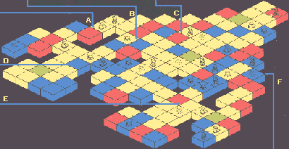 | Danger, UXB. Just one touch and you'll be blown into oblivion. | Jump on the arrows to control the direction of the robodroid - but you'll probably find it easier to jump on and off again rather than crossing the central square. |