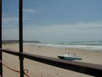 The long empty beach in March. Click to enlarge and spot Leon in the distance!I've made three visits at different seasons: in July it was a packed (but pleasant) sea-side resort; in November it was a sea of mud after recent torrential rain; in March the campsite was open, and so, thankfully, was the pizzeria on the beach - otherwise it was deserted! We had the miles of beach and pinewoods all to ourselves. The sea was cold, but the sun was already hot enough to burn (23C). We left Eraclea one morning and spent the next night in a hotel at Rifugio Sapienza on Etna - where it was -5C and snow lay deep!