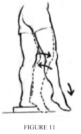 The movement in Figure 13 is similar to those in Figures 11 and 12, however, both legs are used alternatively (like walking or running) but the feet do not leave the floor. One should aim at doing this rapidly is a very relaxed manner.