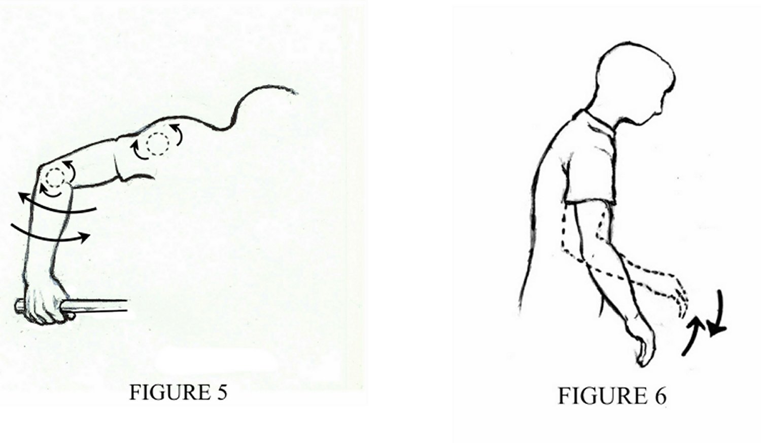 Figure 10 shows a movement for the arms when the requirement is a side-to side motion similar to, say, that in a tennis shot, or golf swing.