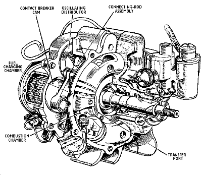 As the drawing shows, the resultant power unit is far from compact but is not so complicated as it looks. The design did not get very far because of the difficulty of producing cylinders and pistons.