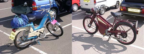 The massed start from the collecting point always gets broken up through the junctions and traffic lights of Stowmarket, then strung out into a column up Poplar Hill, led by David Evans/Puch 3, Laurance Coates/Honda PC50, Paul Nelmes/Bown Autocycle, Mick Cousins/Honda Cub and Neil Morley/Mobylette M40 sparring with Essex trio Pete Chinnery/Mobylette, Pete Smith/New Hudson, and Paul Efreme on a rarely seen Flandria 147 AF-A moped. Rarely seen it appears since they break down so readily, the new paint and all the polished parts seemingly unable to prevent heat related coil failure at barely 3 miles. NM stopped to offer moral support if no resolution as the kerbside autopsy failed to find the missing spark inside the flywheel case. Mr Grumpy dragged it back to the start, and that was the end of the Belgian challenge!
