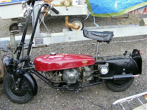 It's not a cyclemotor, it's not an autocycle and it's not a moped, but this 1952 98cc Bown motor cycle in the club line-up was probably the machine that most club members coveted. Why? Because it's completely original. It has been stored, unused, for over 50 years. It even has the instructions and tool kit still wrapped up in the toolbox.