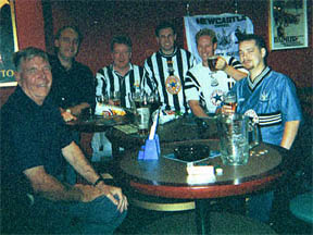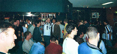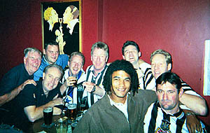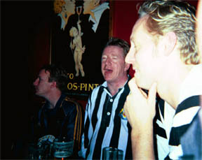 Loony handing the lucky Ruud lookalike the prize (his photo taken by me and a pint!!) This was joined by the chorus of Ruud Gullit's black and white army!! |