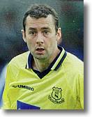 The following info from Evertons Toffeewebsite Everton manager Howard Kendall showed great faith in the devil you know, as he went back to his previous club, Sheffield United, to strengthen Everton's struggling midfield with Don Hutchinson following the acrimonious departure of Gary Speed. "It's good to be back on Merseyside," the former Liverpool and West Ham midfielder told ClubCall. "I am really excited about being back in Liverpool and being given another chance at a massive club." Kendall brought the 26-year-old Geordie from West Ham to Sheffield United in January 1996, paying £1.2M for him, and an injury-depleted midfield has prompted the manager to sign Hutchinson again. "I got on really well with Howard and Inchy so it is nice to be involved with them again. I still have got a few friends over the road at Liverpool but obviously I will not be able to talk to them anymore," he joked. "No, it's just good to be back. I am not sure what role Howard will want to use me in. Whether it's as a defensive midfield player or to try and get goals, it is not a problem." Hutchinson started his career with Hartlepool before moving on to Liverpool for £175,000 in 1990. Hutchinson had a problematical four years at Anfield and Howard Kendall took him to Sheffield United. Through his dealings with the player, he is convinced he brought quality to the squad. Evertonians took some time to be convinced, although Don at least put in the effort during the fraught final months of a dismal league season for Everton under Howard Kendall. Don Hutchinson didn't really come good for Everton until Walter Smith gave him a commanding role in midfield, and made him team captain if Dave Watson was absent. Hutch showed himself as a solid defender and determined midfield general, who held Everton together through the darkest days of another depressing winter at Goodison. Hutchison's reward was an extended contract, and improving fortunes as Everton started to finally score some goals and win some games as the spring started to bloom. For his efforts and commitment, Hutch was even voted Everton's Player of the Season in some quarters a decision which did not please the purists. By any analysis, Hutchison is little more than an animal on the field, a sad corollary to Everton's parlous position in the Fair Play League as the most indisciplined club in the Premiership. What was that motto again? Oct 99: The Don's position at Everton has been subjected to excessive speculation, with claims that he could go to of all places Newcastle United. This despite all the usual platitude about wanting to run out his career at Goodison Park. The reason for this nonsense? His contract will be up in two years... Yes, two years!!! Some fans saw the hand of his greedy agent at work here, upping the ante to supposedly failed negotiations for a contract extension. Apparently, the problem there is that his pay rate drops substantially in his final year the year on which his pension is calculated (do players get pensions?) and the Everton Board are adamant. Things were hardly made any better when he had an ugly on-field spat with defensive rock, Richard Gogh, during the Coventry match, but that was quickly settled between the players, if it left a lingering bad taste in the mouth of many fans. The next slap in the face was to hear that The Don is now angling for a move to Serie A. You just don't know whether to laugh or cry! Toffeeeeweb