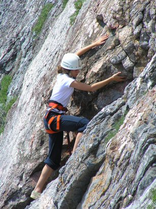 | Torbay's apparently inaccessible cliffs, coves and zawns offer a chance to explore where only a few dare to venture. Climbing sideways (or traversing) along the sea washed limestone just above the high tide mark, is great fun; it is exhilarating and allows you to visit a wild, forbidden environment in absolute safety. The rock is hot and the whole experience has a Mediterranean feel to it. The climbing is of an easy standard, the friction superb and the rope protection pre fixed, but this does not detract from the feeling of pure excitement as you climb round that next hidden corner. |