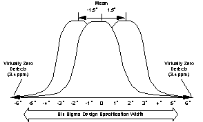 Six sigma is based on statistical measures in which sigma is one standard deviation about the mean. Six sigma as defined by Motorola, however, is not a simple matter of managing within plus or minus six standard deviations. Taken literally, that level of control would allow for error rates of only 0.002 per million. Instead, the six sigma approach accepts that the mean is not fixed but can drift up and down. It therefore allows a plus or minus 1.5 sigma shift in the mean as the drift within its span of control.
