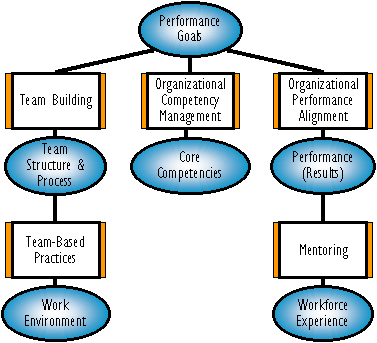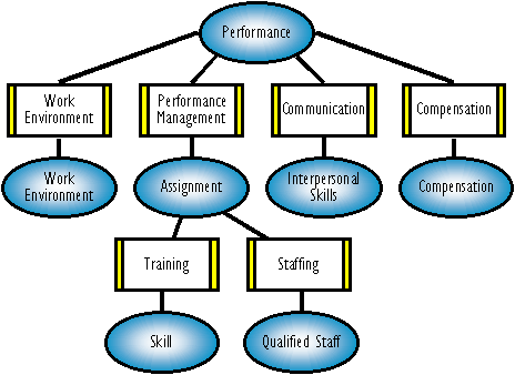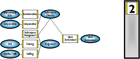Each of these process areas focuses on achieving a good match between two characteristics of People Management. I have drawn these characteristics as blue ovals. Level 2 is all about Performance. The six components of Level 2 can be drawn as a hierarchy, with Performance at the top. |