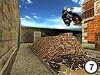 7.) This bit's difficult. . .not even James Stirling-Hill, the greatest racer of all time gets this right all the time. After landing on the flat, you must ride down to the left side slope and and then ride up it again and shoot into the air. Don't try this at home. Try it at someone elses, like Ms.Crofts, for example. |