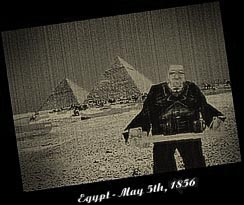 My grandfather, Jeeves I (the original) , Egypt, 1856. A visit to the pyramids whilst on expedition with Sir Winston Buxtonshire-Browne. Despite the searing heat, Sir Winston expected his tea at precisely four o'clock in the afternoon each day. Good for the morale of the men, apparently. This photograph was taken just minutes before Sir Winston was tragically killed during a freak camel stampede. |