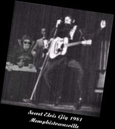 Secret Elvis Gig, Memphistownsville, USA. Pictured here with the "King", this bash was a rather boisterous affair. I had previously met Mr.Presely (presumed dead) whilst on expedition to India, where Earl Winchester Buxley-Harrington III had discovered him passing his days away at the top of a very tall pole, contemplating "life, the universe, and a few other bits and bobs". (Jump-suit