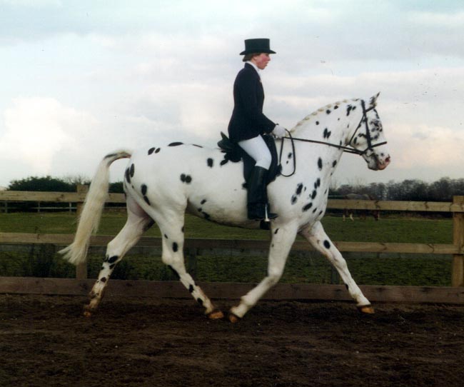Whether you are looking to breed a champion competition horse that will excel in the show ring or simply introduce colour and quality to your favourite mare, Centaur Roscoe is the ideal choice. With pedigree that dates back to the legendary American racehorse Secretariat. Roscoe's striking beauty and fine head never passes unnoticed. He oozes presence and combines incredible elegance with a majestic self carriage. Consistant champion inhand including 1996 and 1998 Male and Supreme Champion at the Northern Appaloosa Show. Roscoe continues his success under saddle. He has demonstrated his versatility winning Dressage, Working Hunter and Ridden Show Classes, with numerous County Level Championships to his name and is now continuing with affiliated dressage