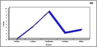 Then on tuesday there is a middle value, with a peak on wednesday. It drops on Thursday, and then rises on Friday, though not often higher than the Tuesday value. See the graph below.