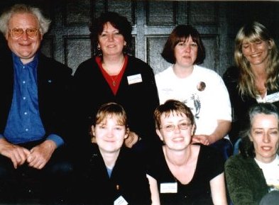 SUNDAY Our second and final guest arrived - Colin Baker from 'Dr Who'. He was, as I'd already found out, witty, charming and very obliging. He was on stage for a good hour and a half until John turned up, telling us many funny and hilarious stories from his multi-faceted career. The auction went well; we had a good selection of things to offer. To our surprise and pleasure we raised over £1,600. Thank-you all for your generosity. John gave a second, very relaxed talk for quite some time. We eventually had a very quiet closing ceremony followed by autographs across the street in the Old Hall, a Victorian hotel. As far as I know, everything ran more or less to time; none of the videos got eaten by the machines and the stewards all rallied round to make sure that most programmes kept running throughout the weekend. Everyone who attended said that they'd enjoyed themselves; I'm just sad that more Leapers didn't come on board to share the warm, informal and wonderful atmosphere.