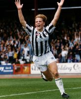 strange affair when the Ayr keeper was deceived by the ball rolling down Donga's leg and