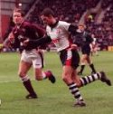 75 minutes had a strong Saints connection. Jim Dick was brought down in the box by
