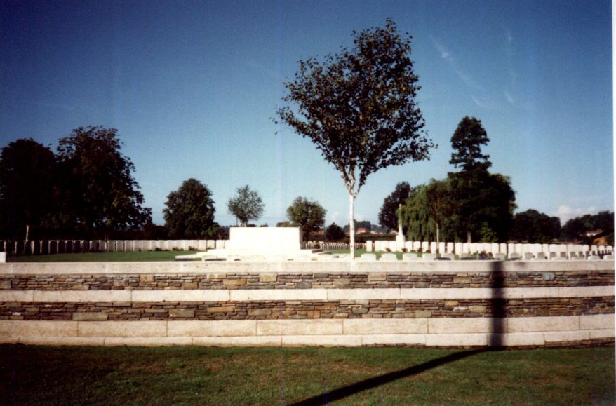 The cemetery gets its name from the nearby farm and dugouts in the railway embankments. Contains