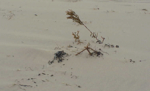 Sand is continuously moving around at the top of the beach and it needs an obstruction to break the force of the wind, so that sand begins to accumulate. Seaweed, dead seabirds, driftwood and other detritus may all serve this purpose. These embryo dunes may disappear as quickly as they form but some may eventually be colonised by plants and the sand stabilised. Conditions here are very extreme, with high pH values (over 8), rapid drainage, no humus, high wind speed and lots of salt spray. These young dunes may reach no more than 1 metre in height. |