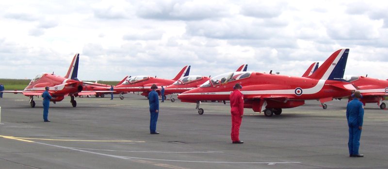 Flt. Lt. Howard Leader, of the Red Arrows, admiring our