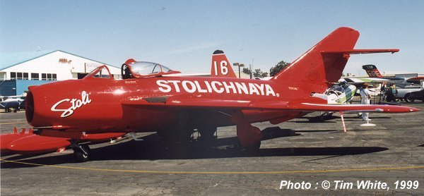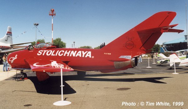 U.S. Civilian MiG-17 Duo Two exclusive views of the Stoli MiGs MiG-17's NOTE : Originally known as "Red Star Airshows", and then the "Stoli MiGs", this team is now sponsored by Smirnoff, and call themselves the Smirnoff MiGs. You can learn more about this team by visiting their web site at http://smirnoffmigs.com Clicking on any of these pictures will show a much larger, higher resolution version.
