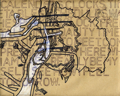 5 Short Films... 'Cupboard' Mail-Art Remix (2006) Marker pen, biro and chinograph pencil on used brown-paper envelope. Dimensions approx. 27cm x 22cm.