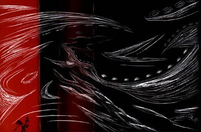 Etching on colour photograph.