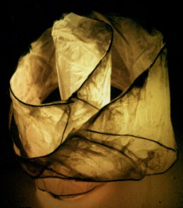 Organic Form Table Lamp (1997) Tissue paper, steel wire & Par 16 lamp. Dimensions approx. 20cm x 20cm x 25cm.