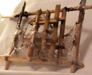 Temporary Distraction No. 001 (1999) Pine with superglue, sellotape, tacks and ash. Dimensions: Small.