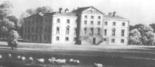 This large house was erected by Sir Richard Brooke in about 1750. It replaced the Tudor house and also swept away most of the remaining buildings of the old Norton Abbey. Only the undercroft of the cellarer's range was left standing, and even this was hidden inside the new edifice. It now formed part of the ground floor of the new house. In this picture it runs approximately from the near left-hand corner and ends behind the staircase which led visitors up to the main family rooms on the second floor.