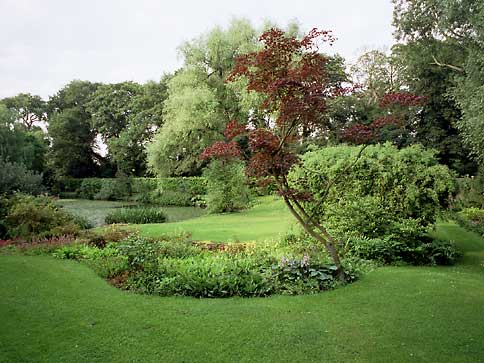 Wardington Manor Gardens Picture 34 A view across the rock garden to the pond. On the right of the picture is a huge clump of bamboo - photographed in Late July.