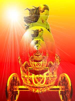 Medea is on the roof, in a chariot drawn by dragons, with her sons' bodies beside her. Who provided the getaway vehicle?