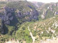 One of the very special hidden places of Sicily - a spectacular limestone gorge carved out by the rivers Anapo and Calcinara on their path through the deceptively gentle-seeming Monti Iblei to the west of Syracuse. Here was once a centre of the kingdom of the Sikels, one of the original Sicilian peoples. A good track runs along the floor of the gorge - it was (until the 1950s) a railway, part of a line which ran from Syracuse right up to Vizzini. There's a station - now a museum - and the original toilet block has been superbly restored! There are a few houses along the gorge - presumably the station was once for their benefit. There are also still a number of tunnels - some quite long, and very dark: a torch is recommended for the scotophobic.
